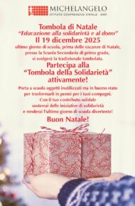 La nostra Scuola Secondaria organizza la tradizionale Tombola della Solidarietà il 19 dicembre 2025.